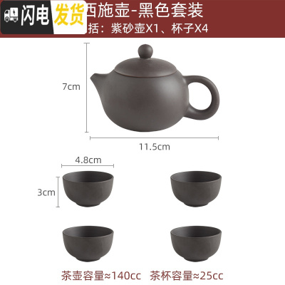 三维工匠宜兴紫砂壶原矿朱泥小号仿古壶纯手工茶壶球孔过滤泡茶壶功夫茶具 小西施壶黑(断水送四杯)送壶绳