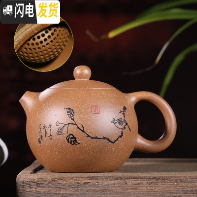 三维工匠紫砂壶半手工原矿朱泥小品壶泡茶壶球孔西施壶家用功夫壶简约小壶 金壶斋-红色鸟语花香西施壶送4杯茶具