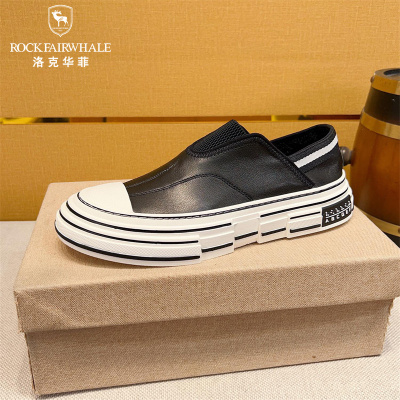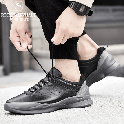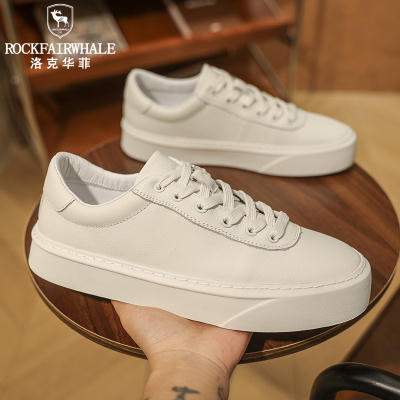 Rock Fairwhale洛克华菲 新品男鞋真皮休闲鞋英伦风头层牛皮小白鞋百搭小白鞋潮流男士板鞋时尚耐磨鞋子
