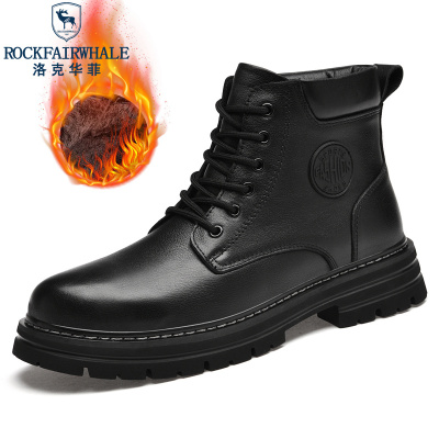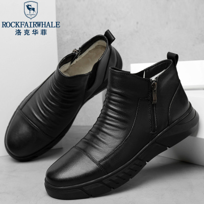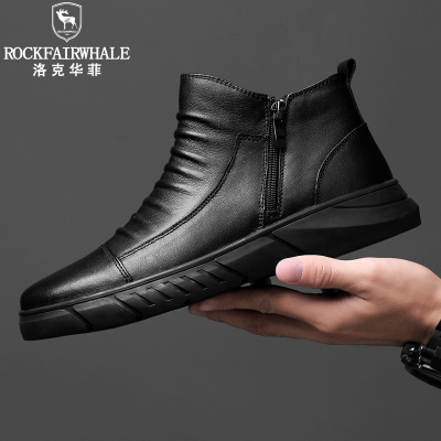 Rock Fairwhale洛克华菲 新品男鞋时尚轻奢休闲皮鞋百搭真皮鞋子 黑色 42码