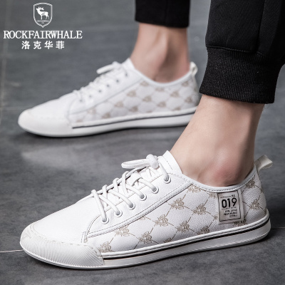 Rock Fairwhale洛克华菲 新品板鞋男夏季透气白鞋低帮男鞋潮流休闲鞋印花手绘小白鞋真皮