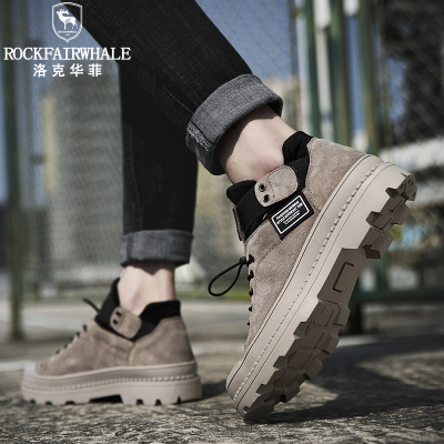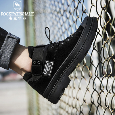洛克华菲 工装鞋新品低帮休闲鞋真皮2024男鞋大码反绒皮耐磨防滑韩版潮流户外鞋工装靴子