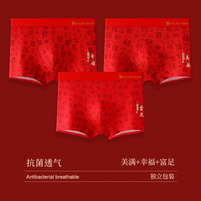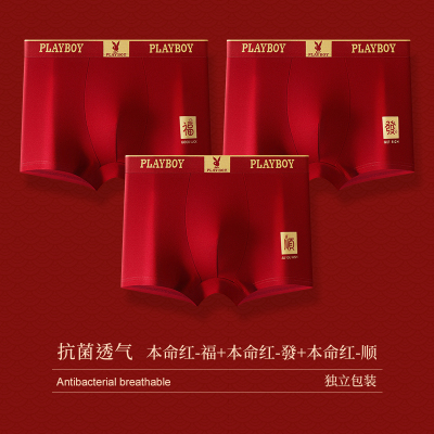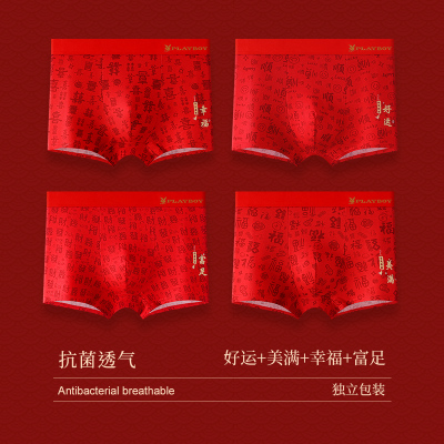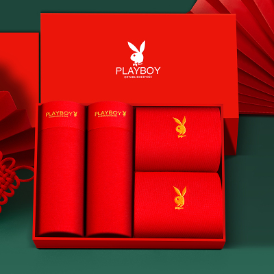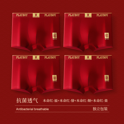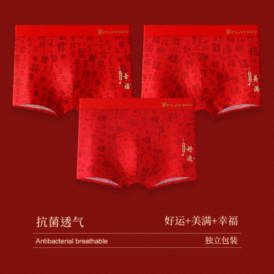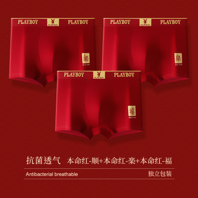 花花公子本命年男士内裤男款四角短裤纯棉大红色结婚礼物蛇年礼盒
