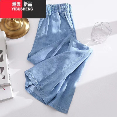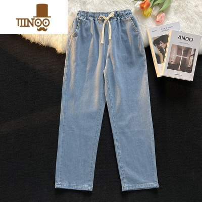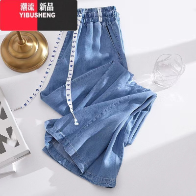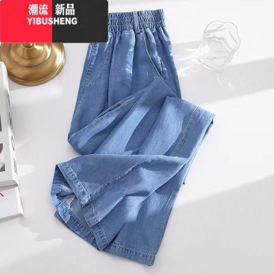 YIBUSHENG大码女装春款薄款牛仔裤女胖mm高腰垂感休闲直筒冰丝阔腿裤
