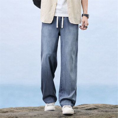 2026春夏新款休闲裤天丝垂感牛仔裤男士薄款宽松凉感直筒时尚长裤