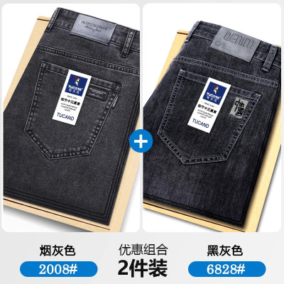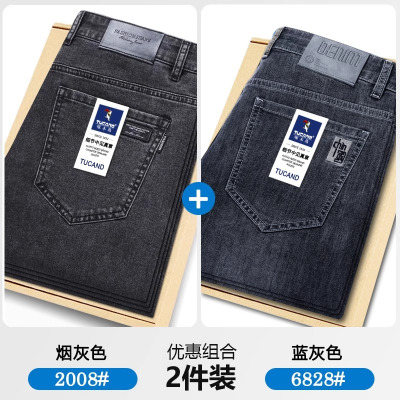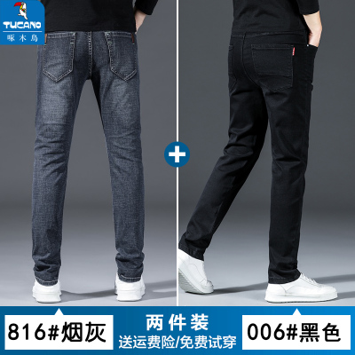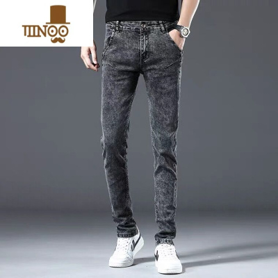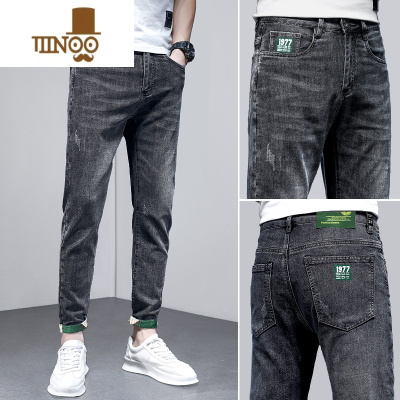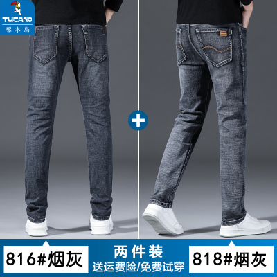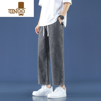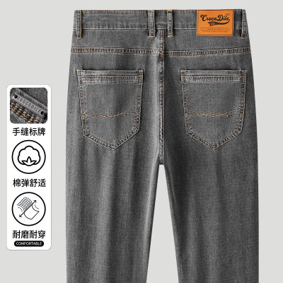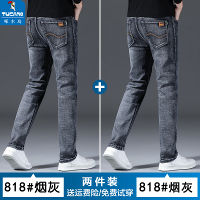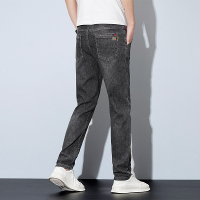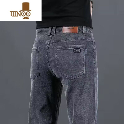 啄木鸟夏季薄款牛仔裤男潮牌宽松直筒弹力烟灰色休闲修身耐磨长裤