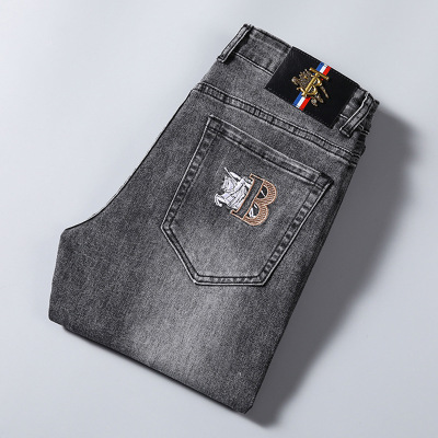 欧货轻奢夏季薄款浅灰色牛仔裤男修身小直筒潮流帅气休闲裤子