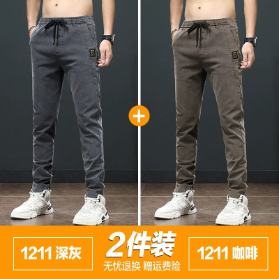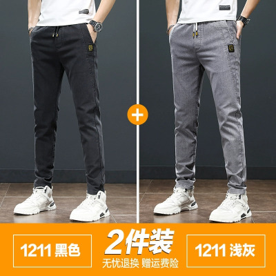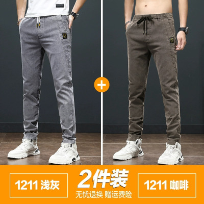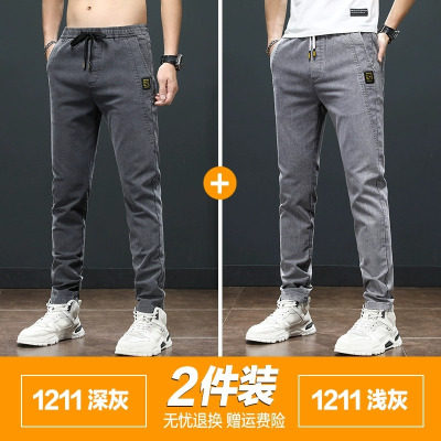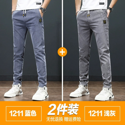YANXU男士牛仔裤夏季薄款弹力修身小脚耐磨工作韩版潮流百搭休闲长裤子