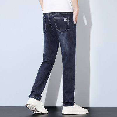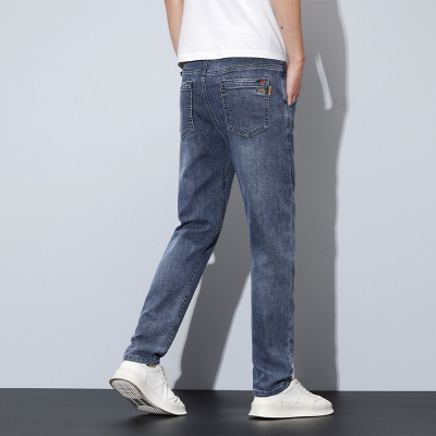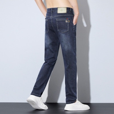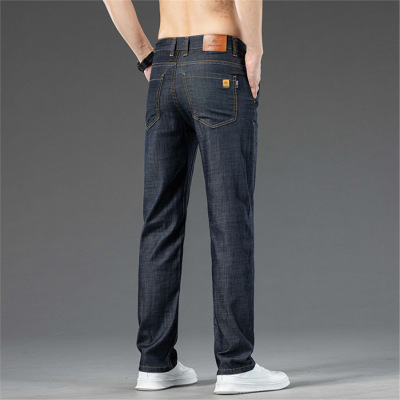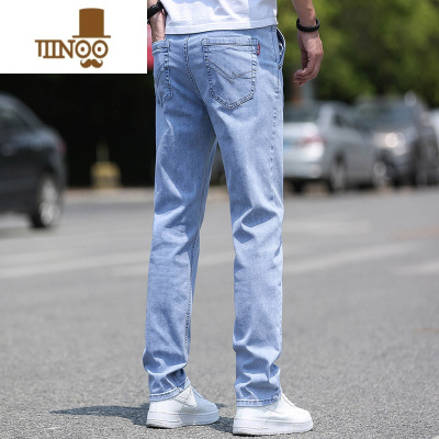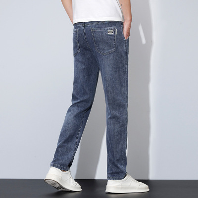 夏季冰丝薄款牛仔裤男士直筒修身弹力休闲裤潮流简约男装裤子