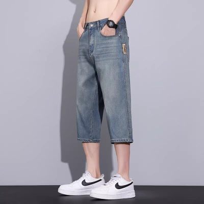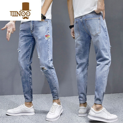 欧版夏季薄款牛仔裤男士年新款时尚休闲百搭男装九分裤裤子男