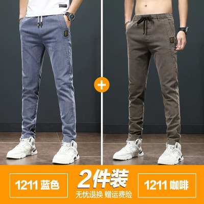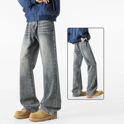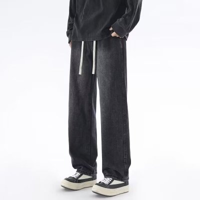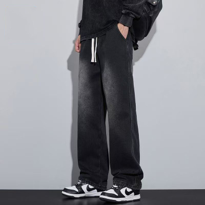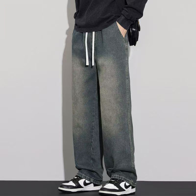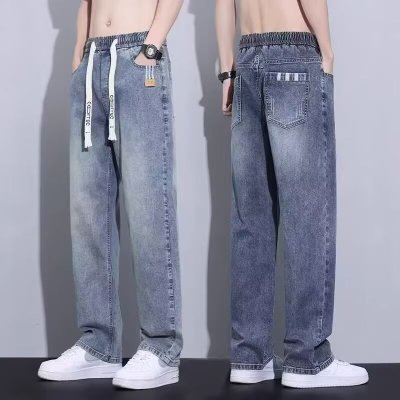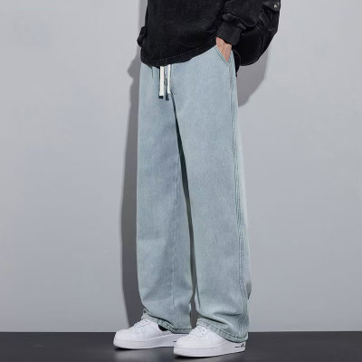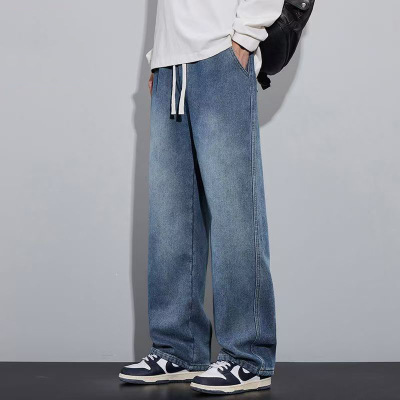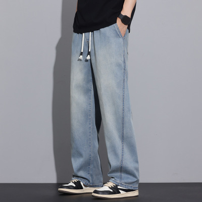 牛仔裤男士秋季新款薄款直筒抽绳复古蓝宽松垂感休闲长裤_1
