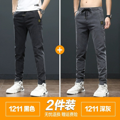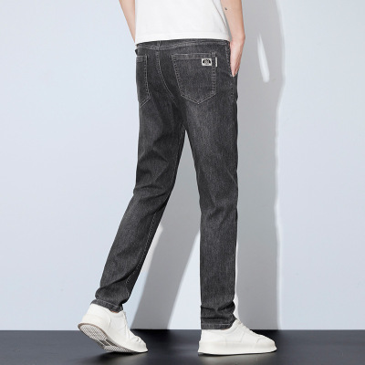 YANXU夏季薄款男士牛仔裤休闲弹力修身直筒韩版潮流长裤子2023新款男裤