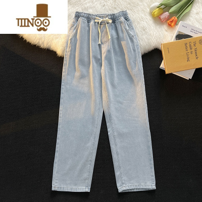 YANXU日系松紧腰牛仔裤男夏季薄款直筒宽松潮牌高街阔腿裤休闲长裤