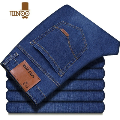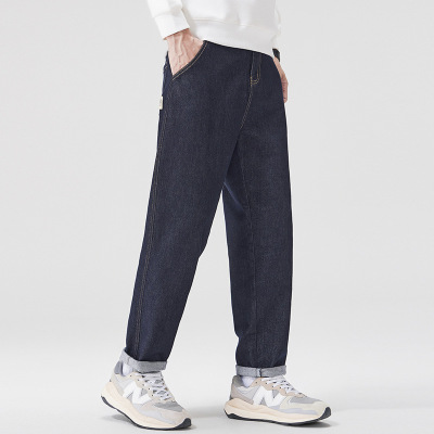 啄木鸟棉致男士牛仔裤夏季薄款宽松直筒长裤2025夏天潮蓝色休闲裤