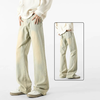 YANXU夏季薄款男士广州新塘牛仔裤男宽松直筒浅色长裤工装耐磨干活男裤
