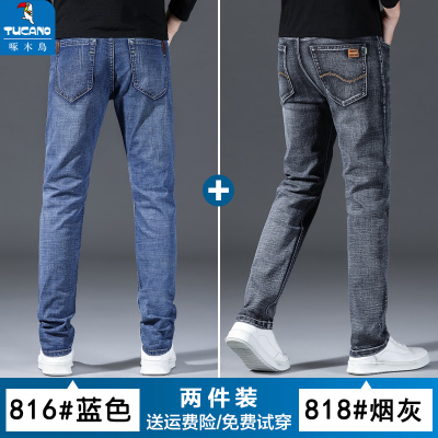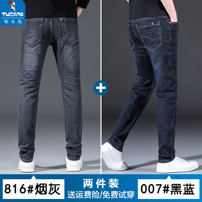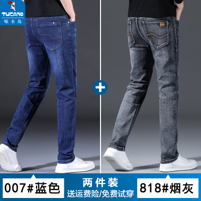 啄木鸟夏季2025新款高端牛仔裤男士薄款直筒弹力修身休闲男裤子潮