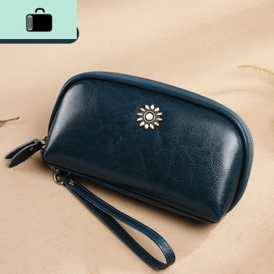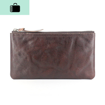 日韩植鞣牛皮长款零钱袋男士皮皱褶复古拉链手机包收纳包卡包女NEW LAKE女士钱包/卡包