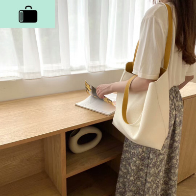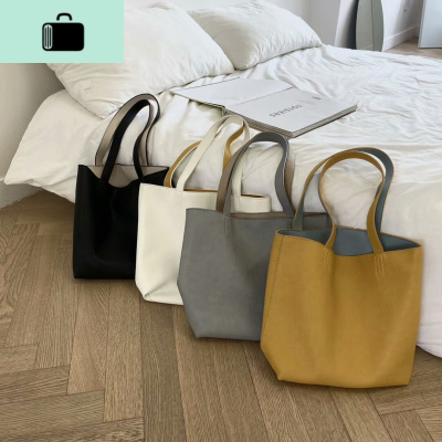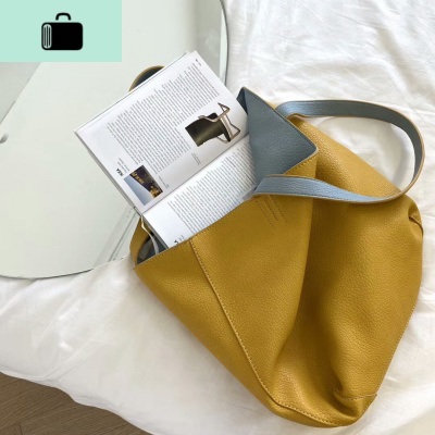 韩国简约软皮双面背大容量单肩大包女夏季撞色慵懒风托特母包NEW LAKE女斜挎包