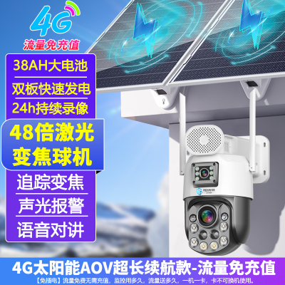 1、变焦变倍拉远拉近。2、流量永久免费充值。3、双太阳能板发电。4、38AH大容量电池