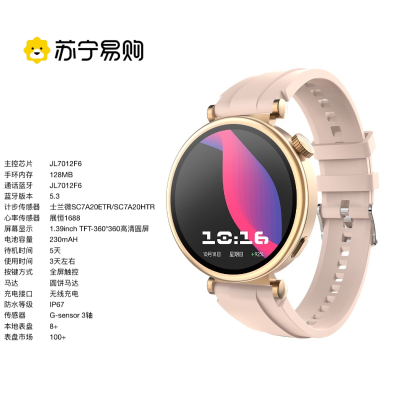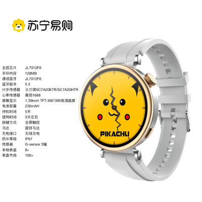 心率传感 CPU→MT2502D 无线磁吸充电 15米蓝牙连接 防水等级IP67