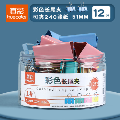 真彩彩色长尾夹票夹金属燕尾夹资料票据文件夹子收纳试卷办公用品