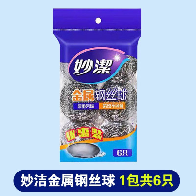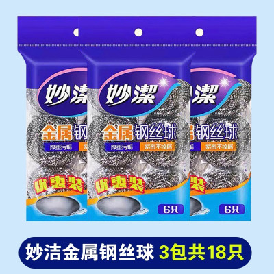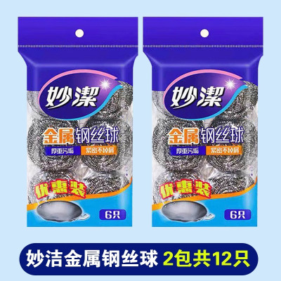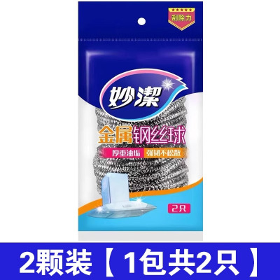 妙洁C型金属钢丝球2只装 家用清洁球不掉丝厨房洗碗刷锅不锈钢铁丝球金属刚丝球