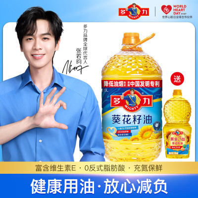 多力葵花籽油5L+238ml物理压榨一级食用油四升家用桶装油炒菜健康营养油酥田推荐