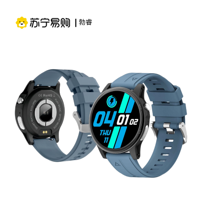绘邦『官方正品』E400健康心率血压心电图无创血糖血氧监测微信运动IP68智能手表环 黑皮
