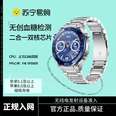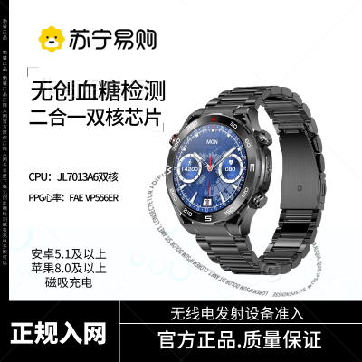 无创血糖检测 金属表壳 睡醒血压监测 蓝宝石玻璃镜面 金属表壳 多运动模式 深度防水