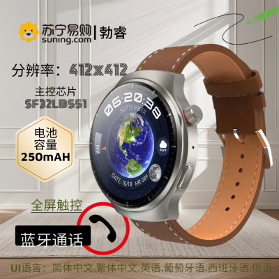 勃睿[苏宁自营]商务款血糖检测HW6 maX智能手表多表盘模式蓝牙通话表盘下载血氧血压心率监测智能手表