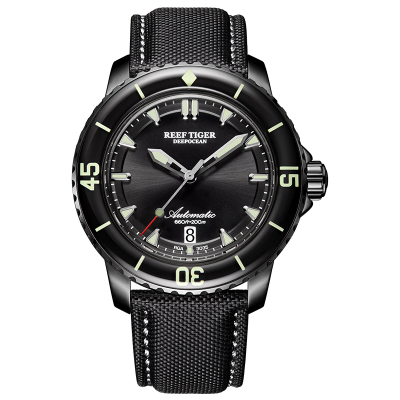 瑞夫泰格REEF RIGER潜水表全自动机械表男表强效夜光200m防水大表盘水鬼表时尚厚重男士手表RGA3035帆布带