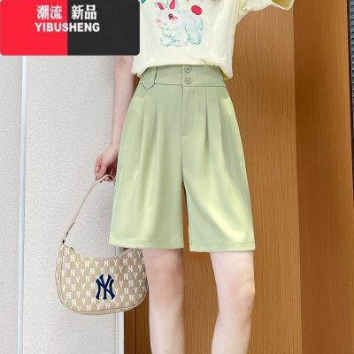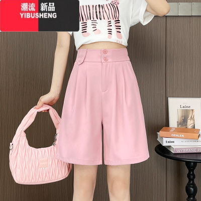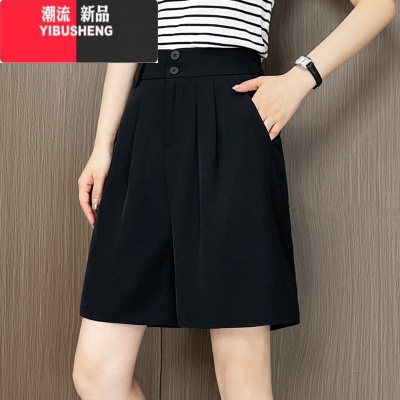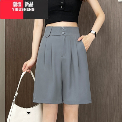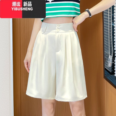 YIBUSHENG冰丝垂感西装阔腿裤女短裤宽松季薄款五分裤松紧腰休闲裤a字裤