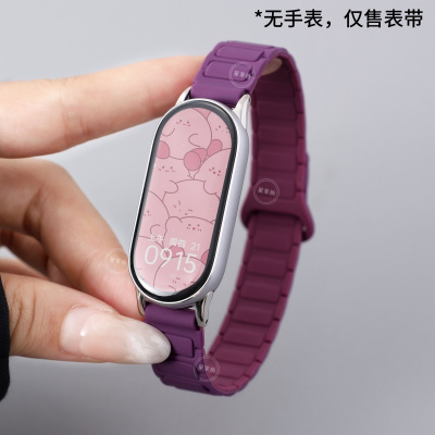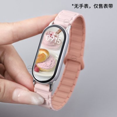 适用小米手环10/9/8表带3/4/5/6/7硅胶磁吸通用NFC版腕带八九十代替换手表带高级感小清新创意拼色3264