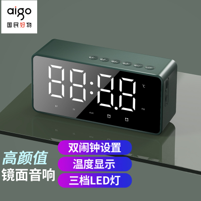 爱国者 T28 蓝牙音响 智能时钟双闹钟镜面全屏三档夜灯 便携低音炮插卡音箱收款播报