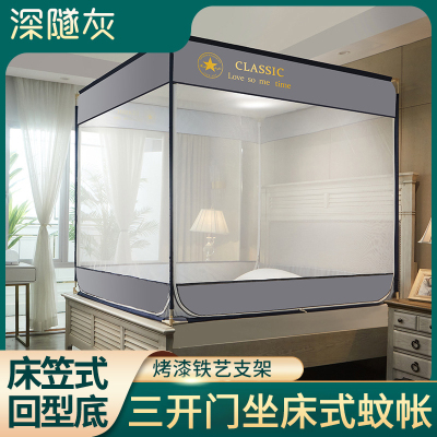 三开门坐床蚊帐 加厚烤漆支架 A类母婴级 宝宝防坠落