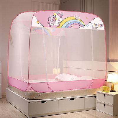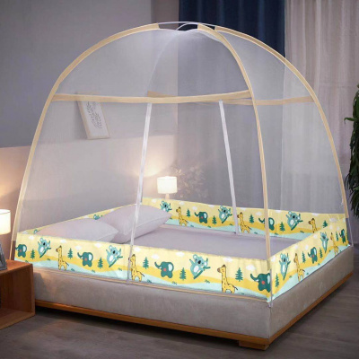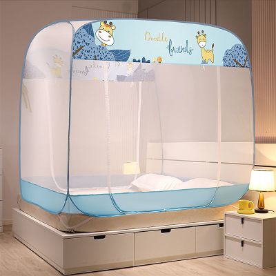 添福运 方顶蚊帐儿童防摔蚊帐三开门拉链款1.5m蒙古包1.8m床家用2米坐床式纹账夏天蚊帐防摔儿童支架拉链式